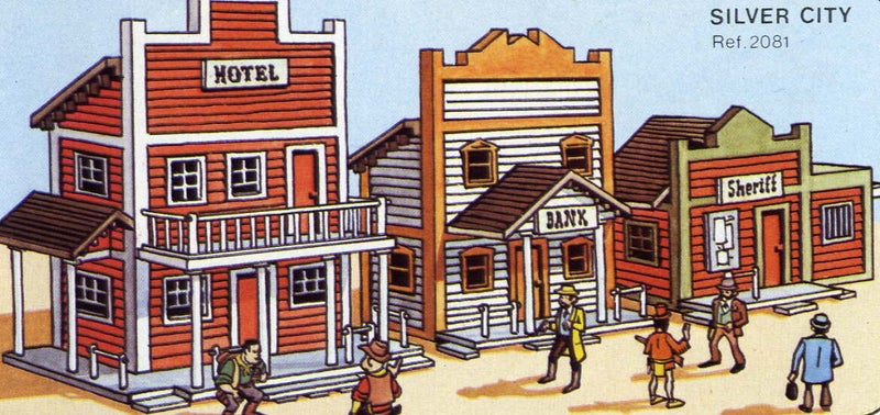 Este juguete permitía “montar” tu propio poblado del oeste: los niños podían construir escenarios, jugar con los personajes, combinar módulos, etc.