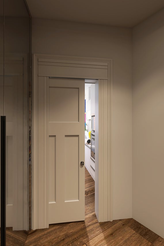 Instalación de puerta corredera empotrada en el acceso a cocina