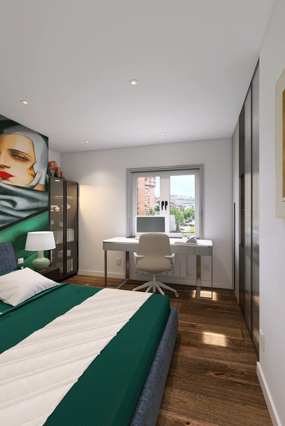 El pavimento será sustituido por tarima flotante de madera o laminado de alta resistencia, con tratamiento de absorción acústica si se requiere, garantizando una continuidad visual con el resto de zonas nobles de la vivienda.