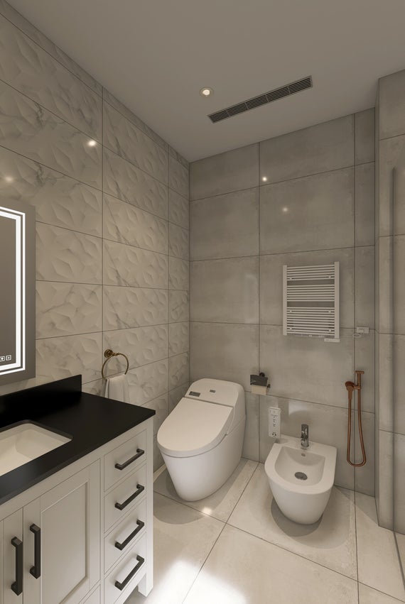 Calefacción y refrigeración: integración de sistemas de climatización pasiva o activa (como radiadores toalleros o ventilación forzada), compatibles con la configuración final del baño y los acabados.