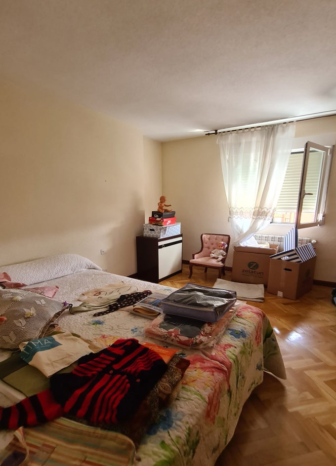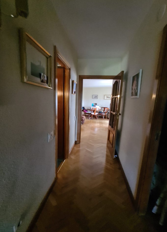 Se llevará a cabo un enlucido completo de los paramentos verticales y su posterior acabado mediante pintura plástica lavable en tono neutro, adecuada para zonas de tránsito. El pavimento actual será sustituido por tarima flotante de alta resistencia, en continuidad visual y material con las zonas nobles de la vivienda, buscando homogeneidad y calidez en el acceso principal.