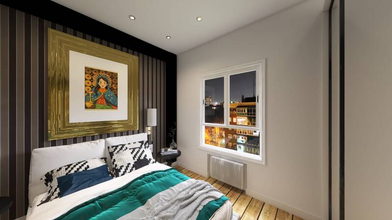 Dormitorio Principal (10.33 m²): Un espacio equilibrado con capacidad para almacenamiento y excelente ventilación.